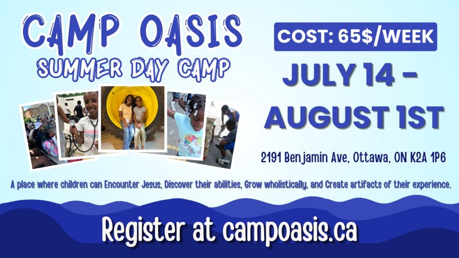 Camp Oasis Summer Day is accepting kids for the last week from July 28 to August 1, 2025, at 2191 Benjamin Ave in Ottawa. The Camp runs Monday–Friday from 9 AM to 4 PM, offering kids dynamic worship and Bible exploration, creative arts, sports, outdoor discovery, and small-group mentoring to nurture each child’s gifts in a safe, Christ-centered environment.