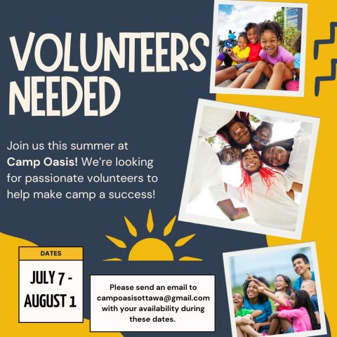 Get ready for an epic summer adventure—Camp Oasis is back! We're calling on energetic volunteers and camp leaders (16+ years) to help make this youth camp an unforgettable success. If you're up for the challenge and ready to make a difference, email us at campoasisottawa@gmail.com with your availability. Join us in creating lifelong memories at Camp Oasis!
