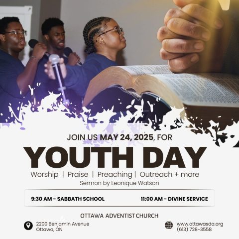 This Saturday, May 24, we're shifting from the regular 2nd Sabbath and celebrating Youth Day on the 4th Sabbath. Start your Sabbath morning with an engaging Sabbath School lesson study at 9:30 a.m., then gather with us for an uplifting Divine Service at 11:00 a.m. where Leonique Watson will inspire us with her sermon, “Finding the Intent.”