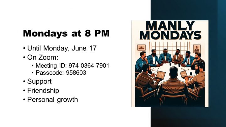 Brothers, Men’s Ministries invites you to get together for “Manly Mondays” every Monday at 8:00 p.m. on Zoom (new Meeting ID: 974 0364 7901; Passcode: 958603) until June 17! It is a great opportunity to connect with like-minded men, grow in faith, build friendships, and support each other.